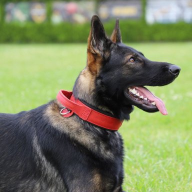 De hoofdband van de halsband is rondom gevoerd met een zeer zacht kussen, waardoor de onaangename effecten van plotselinge schokken tijdens verdedigingstraining worden verminderd. De halsband heeft zeer sterke chromen fittingen: een clip en een halve cirkel. De plaats van de halve cirkel maakt het mogelijk om de riem of het koord te bevestigen en de hond tegelijkertijd vast te houden. Elke huls is geïsoleerd met een leren patch die voorkomt dat het metaal in contact komt met de vacht van de hond. Het dubbel gestikte, zachte en zeer comfortabele handvat van natuurlijk leer maakt het gemakkelijk om je hond onder controle te houden. We hebben de halsband met de hand gemaakt met veel aandacht voor detail om de veiligheid van de hond en zijn begeleider te garanderen.